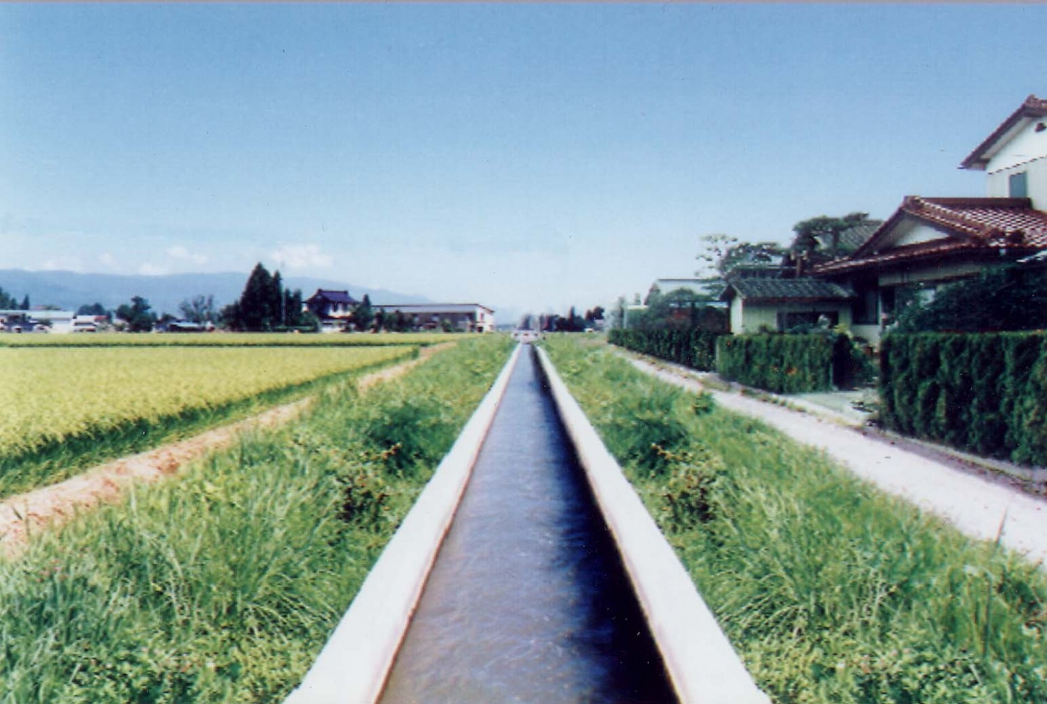 ※アイストップの修景はやり過ぎの割には、本質である水路本体の整備には応えていない。地域毎に、自分たちが何を水路に求めるのかを考えて行かねばならない。下の写真の左側が元の景観で、農業者としては、草刈りの問題は残っているが、ひとまず右側のコンクリート水路は美しいと感じるようです。だが、非農業者や都市住民の視点も大切である。コンクリートによる水路整備が景観として良い、悪いと言うことではないのです。